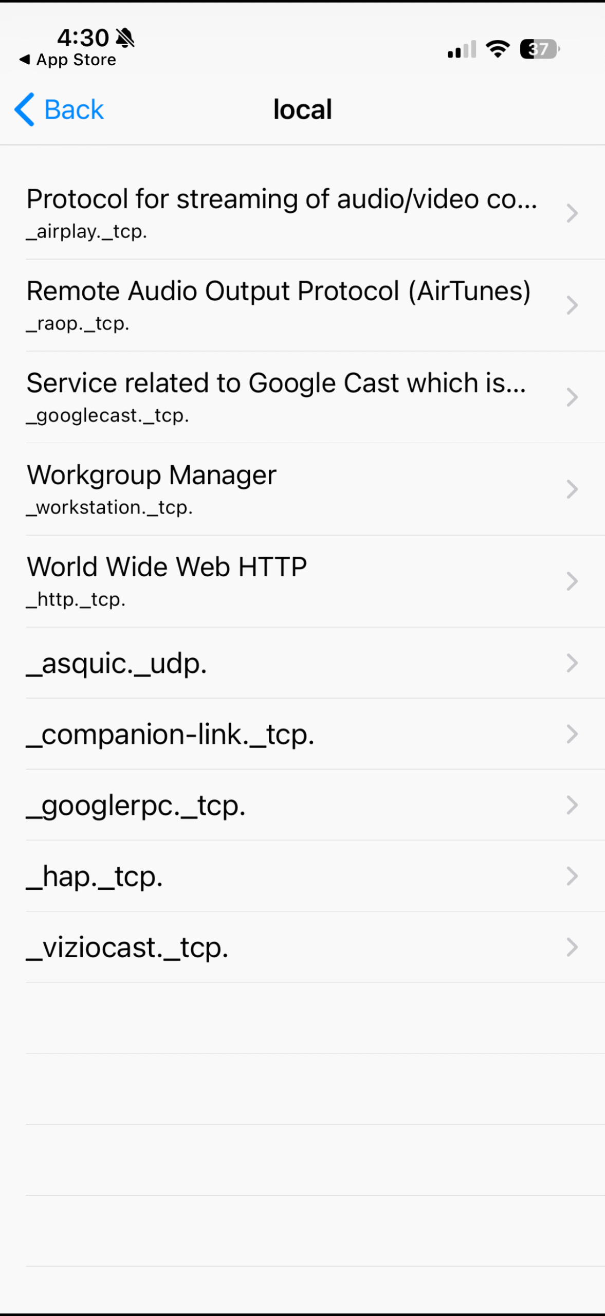 Here’s all the local devices Apple Bonjour discovered over Wi-Fi on my iPhone, including my Vizio TV:
