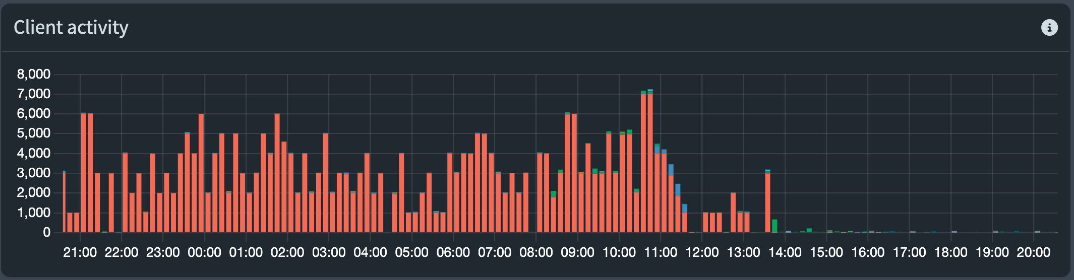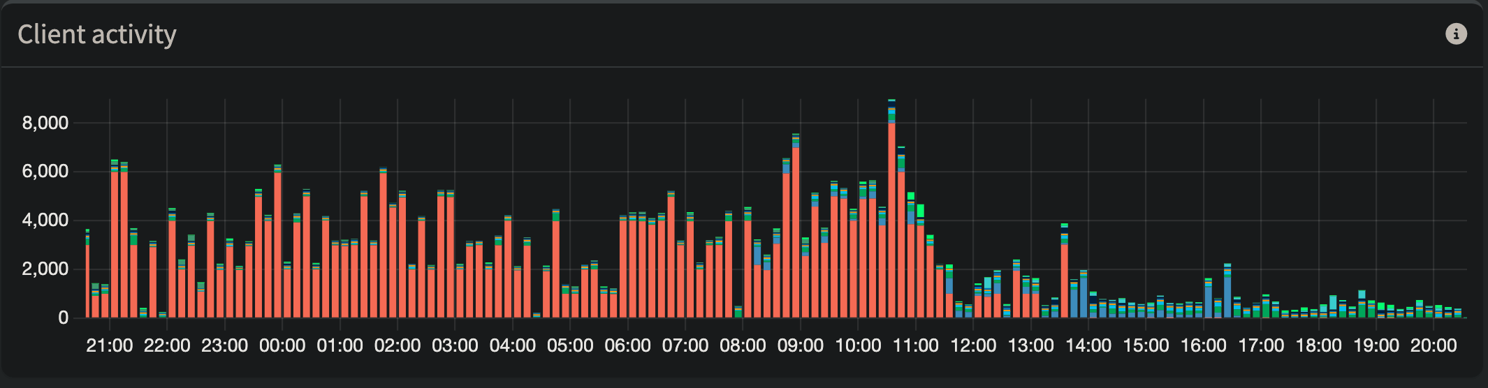 The red on both pi-holes are queries from its partner pi-hole. Hundreds of thousands of looped queries per day. Tomorrow when this data falls off and the scales readjust, I’ll actually be able to use these charts to once again get a visual representation of how chatty different devices are.